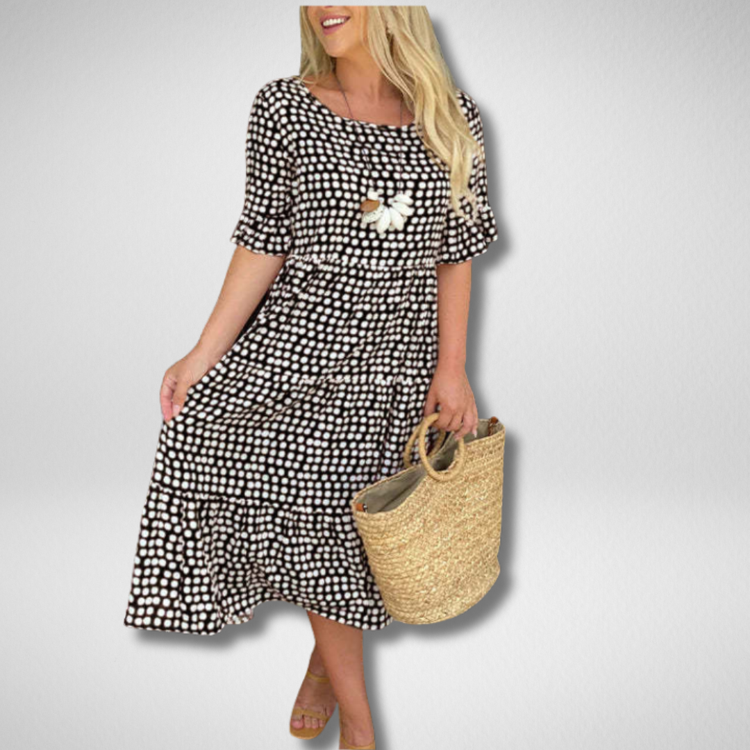 Blythea – Relaxed Gelaagde Midi-jurk – Gracieus Beweging, Moeiteloze Stijl