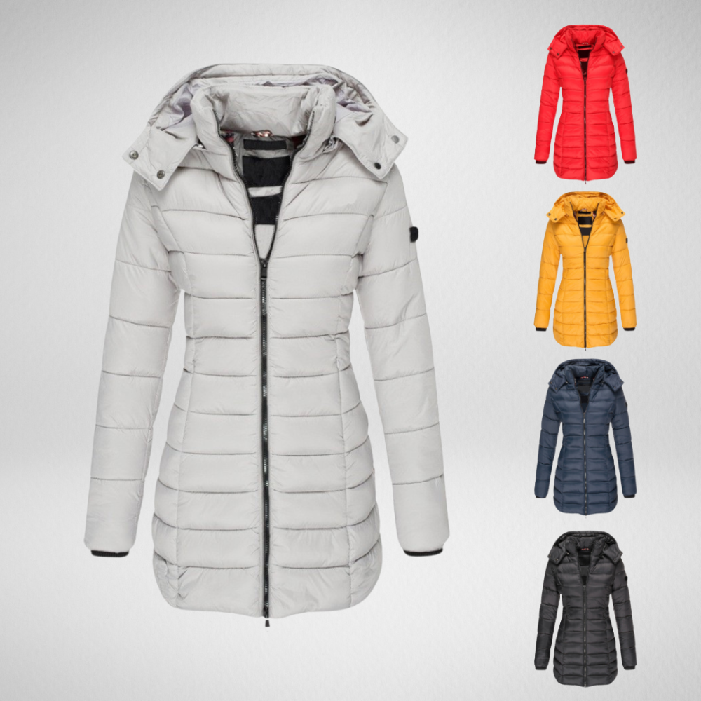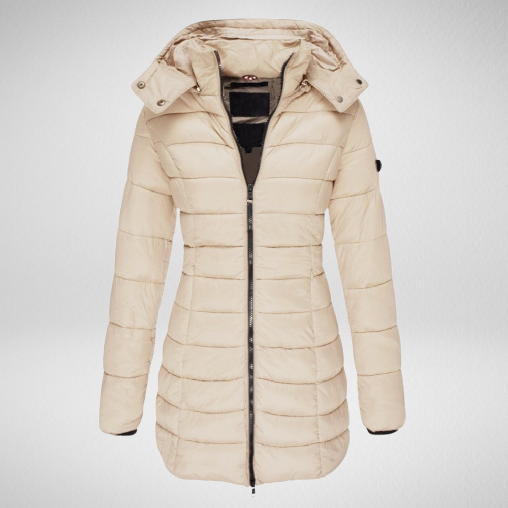 De Elva Lange Gewatteerde Winterjas is de ultieme combinatie van functionaliteit en verfijning.