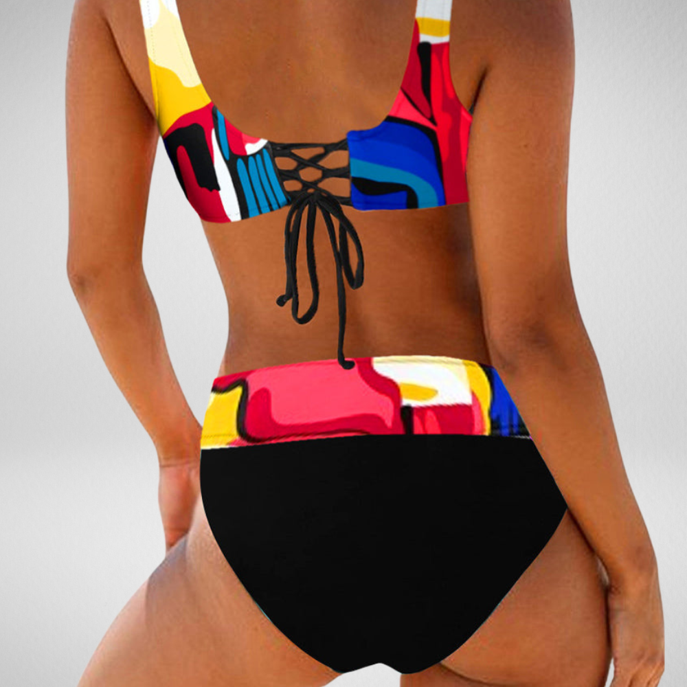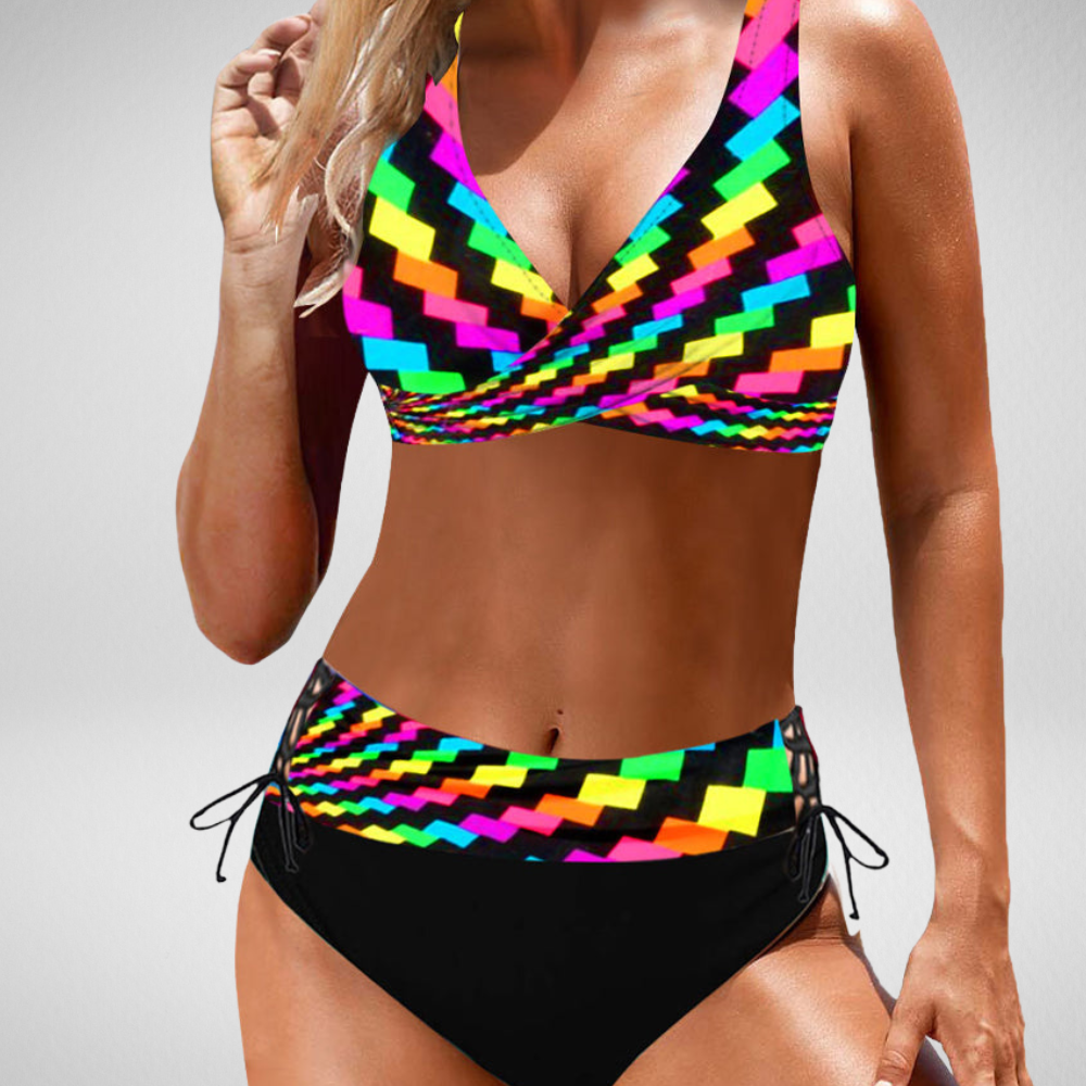De kleurrijke Eva-bikini is de perfecte keuze voor zomerdagen! De energieke kleuren en het stijlvolle ontwerp laten je opvallen op het strand of bij het zwembad.