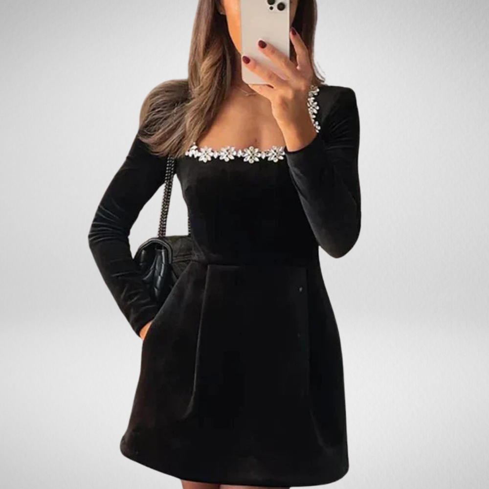 Bestel vandaag nog de Fleur de Velours Lange Mouwen Jurk en voeg een vleugje luxe toe aan je garderobe!Β