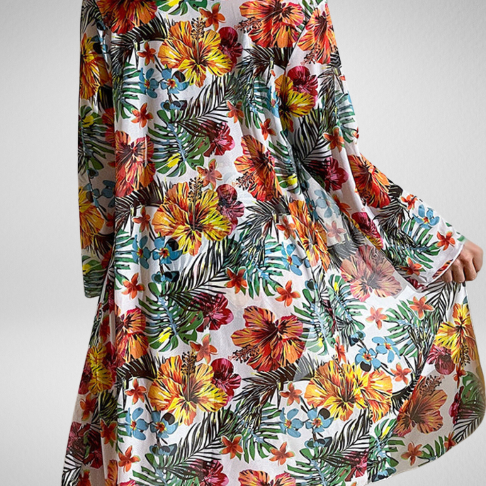 Feminien en stijlvol: Het bloemenpatroon geeft de Glenda-set een romantische uitstraling en maakt het uiterst modieus. Het patroon is zowel levendig als kleurrijk, wat perfect past bij de zomerse sfeer.
