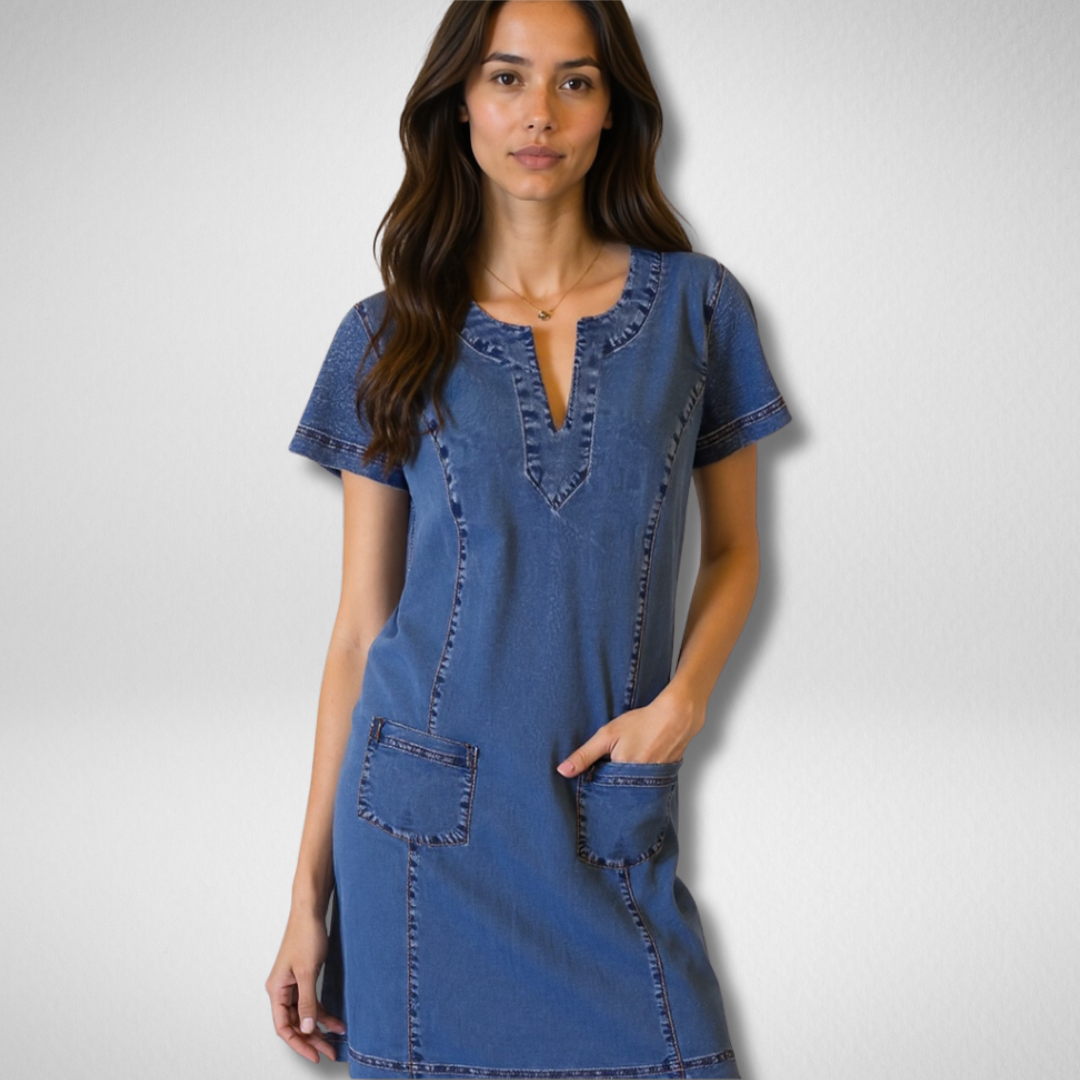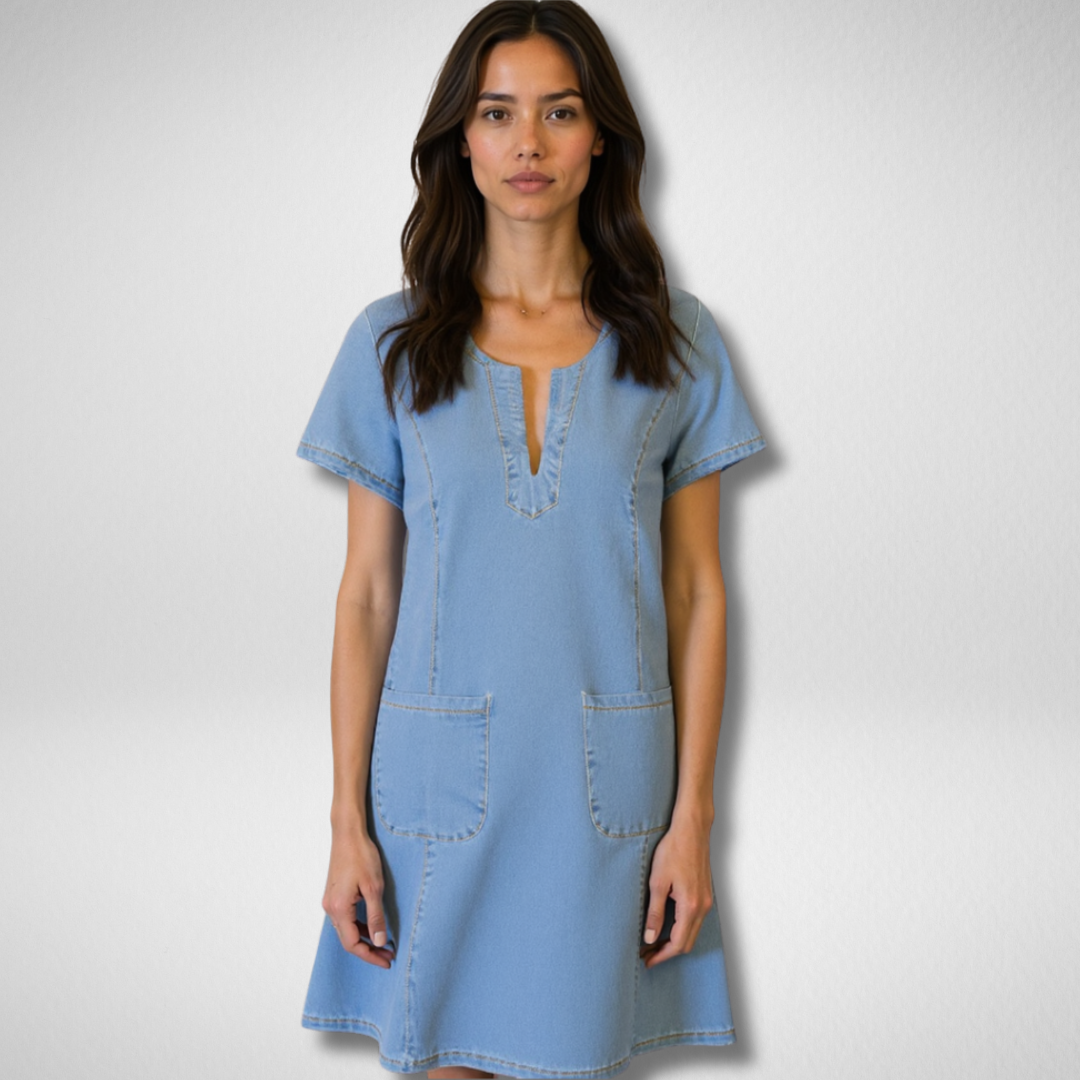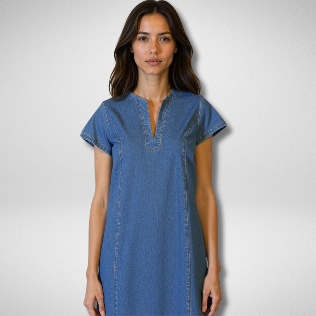 Stap in een look die zowel ontspannen als verfijnd is met deze denim-stijl jurk, ontworpen voor dagelijks gebruik. Ilona biedt een flatterende pasvorm en een zachte structuur – een onmisbaar kledingstuk voor koffiedates, casual wandelingen of spontane plannen. Een eenvoudig, seizoenloos item voor de moderne vrouw onderweg.