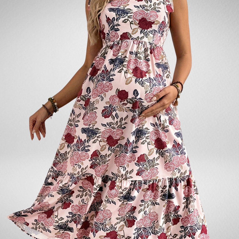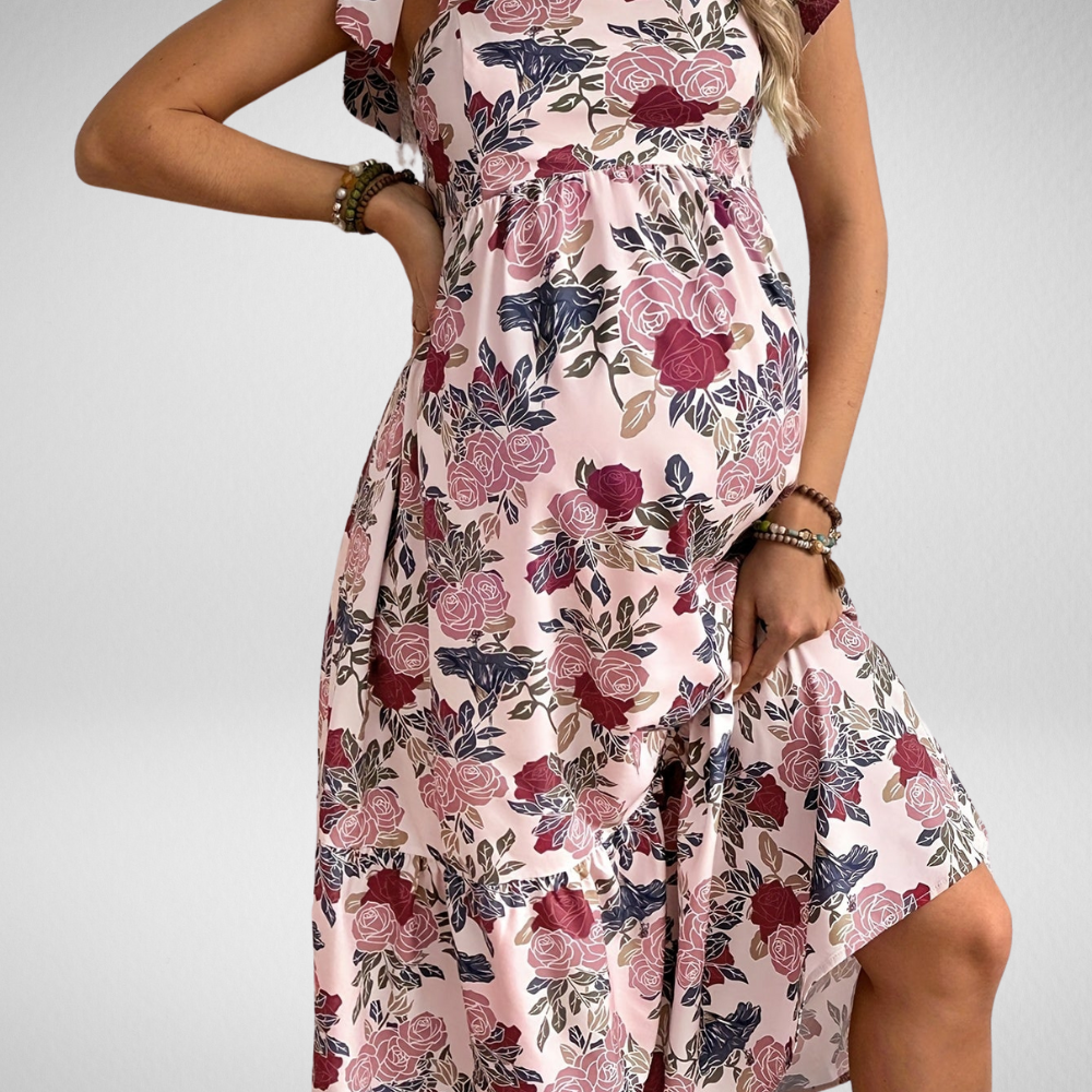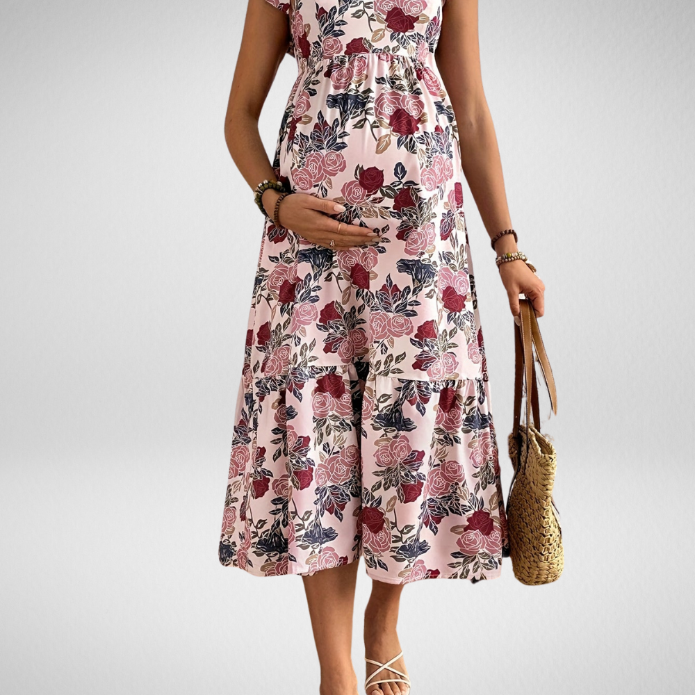 Isalie – Zwangerschapsjurk met Bloemenprint en Ruches