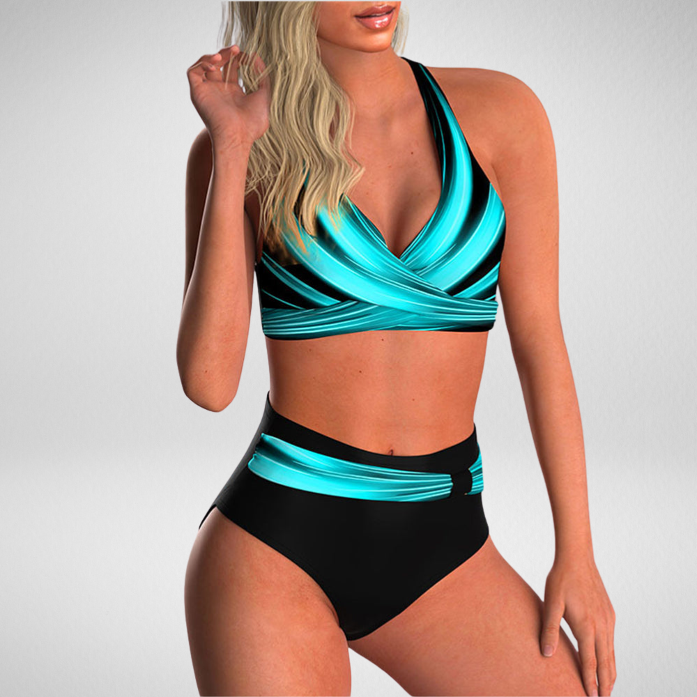 De gekruiste schouderbanden bieden extra ondersteuning en zijn verstelbaar, zodat de bikini perfect past bij verschillende lichaamstypes.