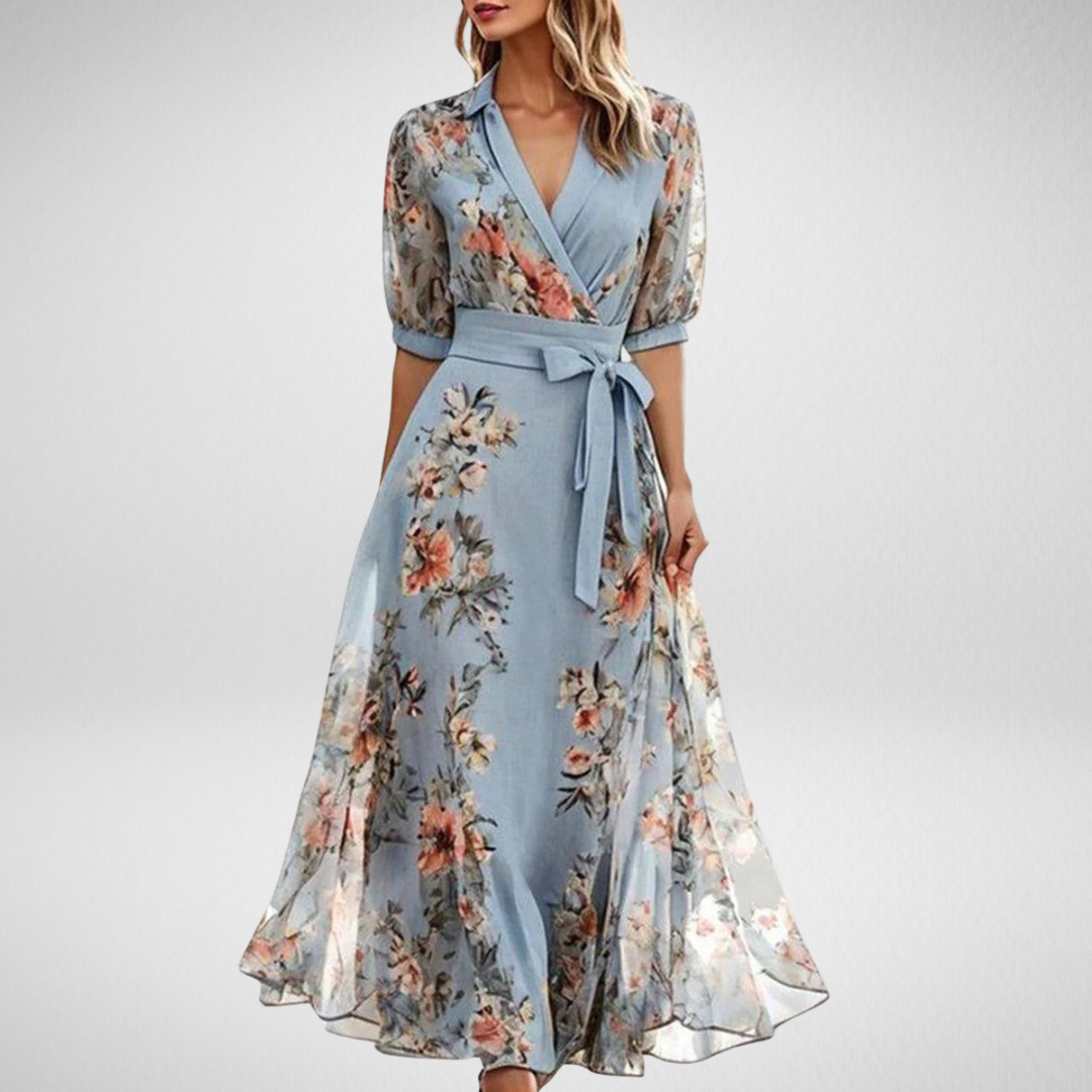 Monika – Bloemen Midi-jurk met V-hals
