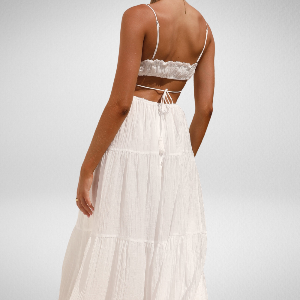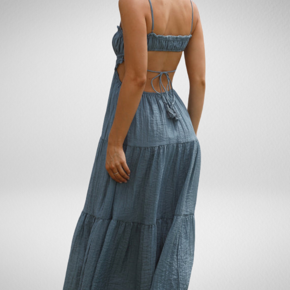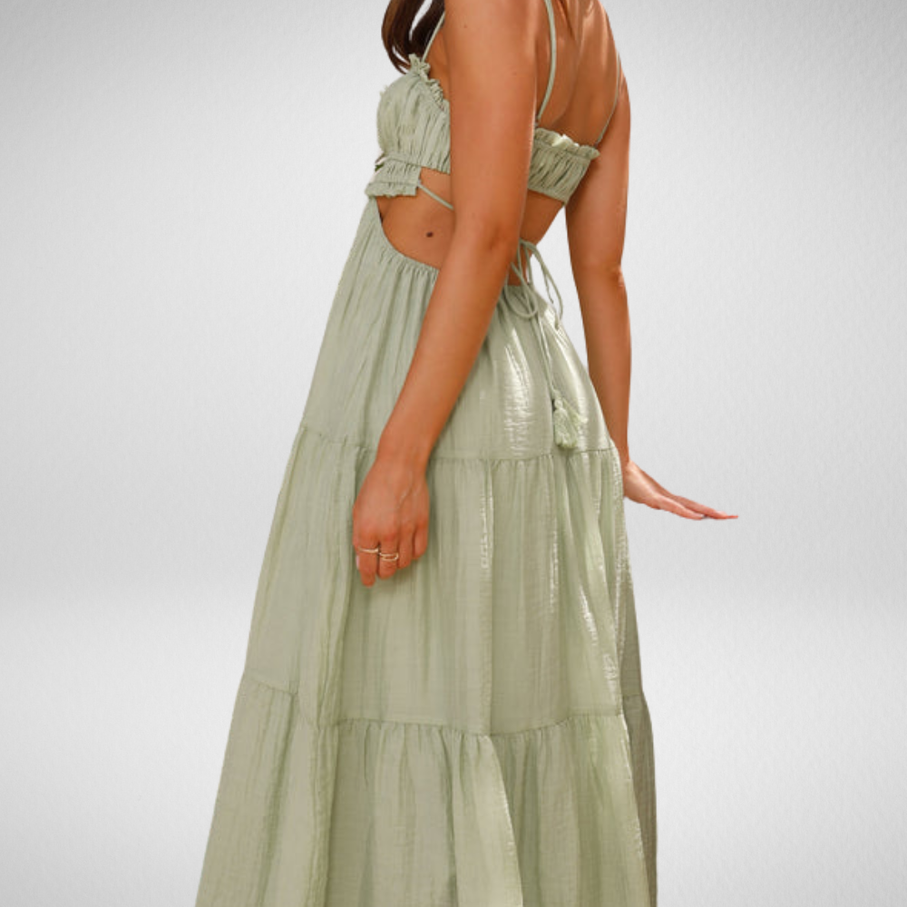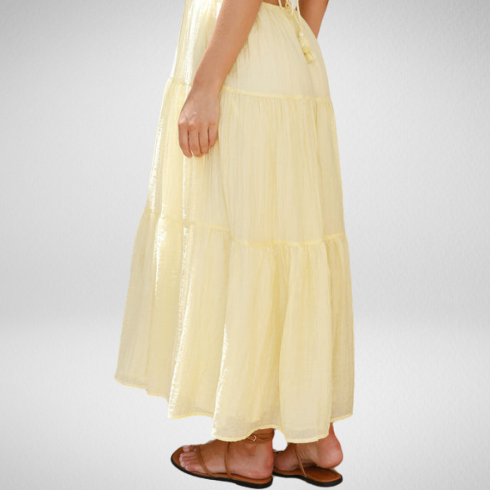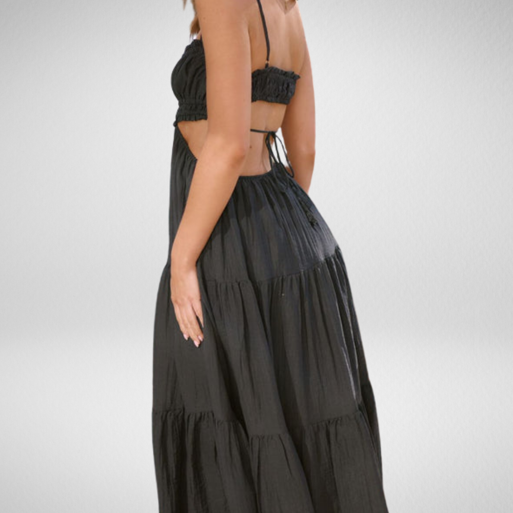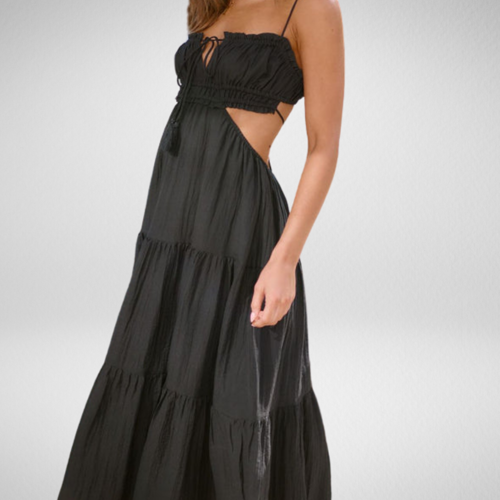 Deze verfijnde midi-jurk is perfect voor zowel casual als formele gelegenheden en voegt een vleugje tijdloze klasse toe aan je garderobe.