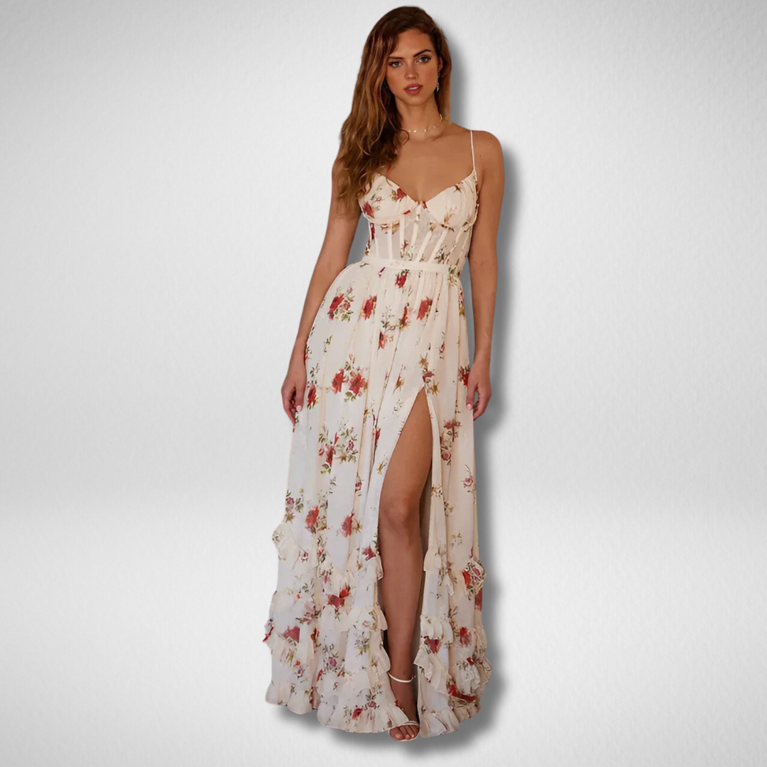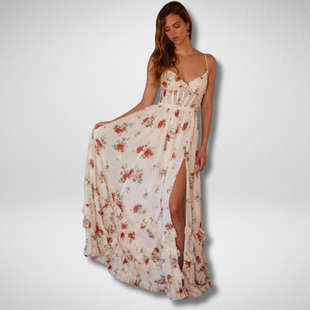 Een jurk die romantiek en stijl moeiteloos samenbrengt.