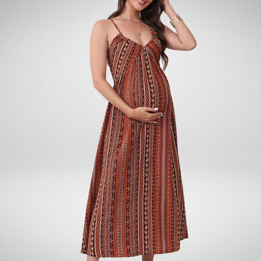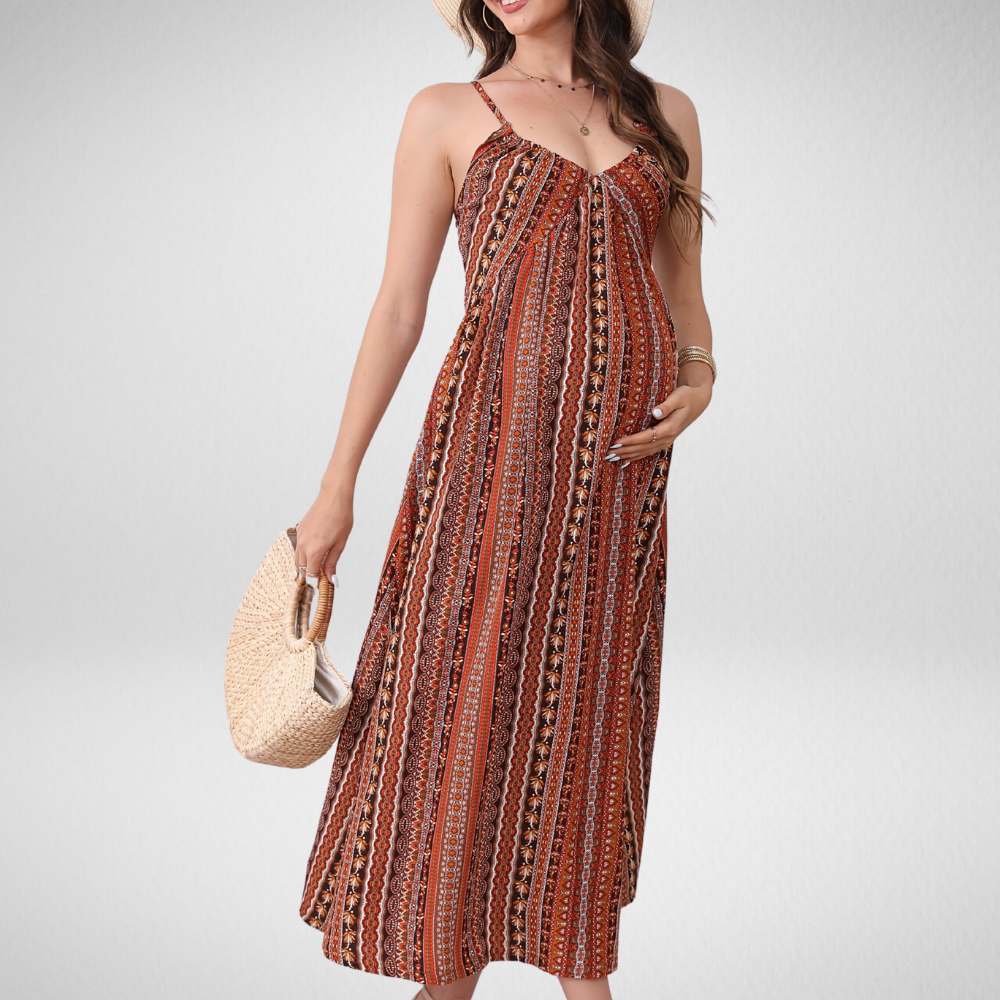 Zara Sol – Boho Zwangerschapsjurk met Spaghettibandjes