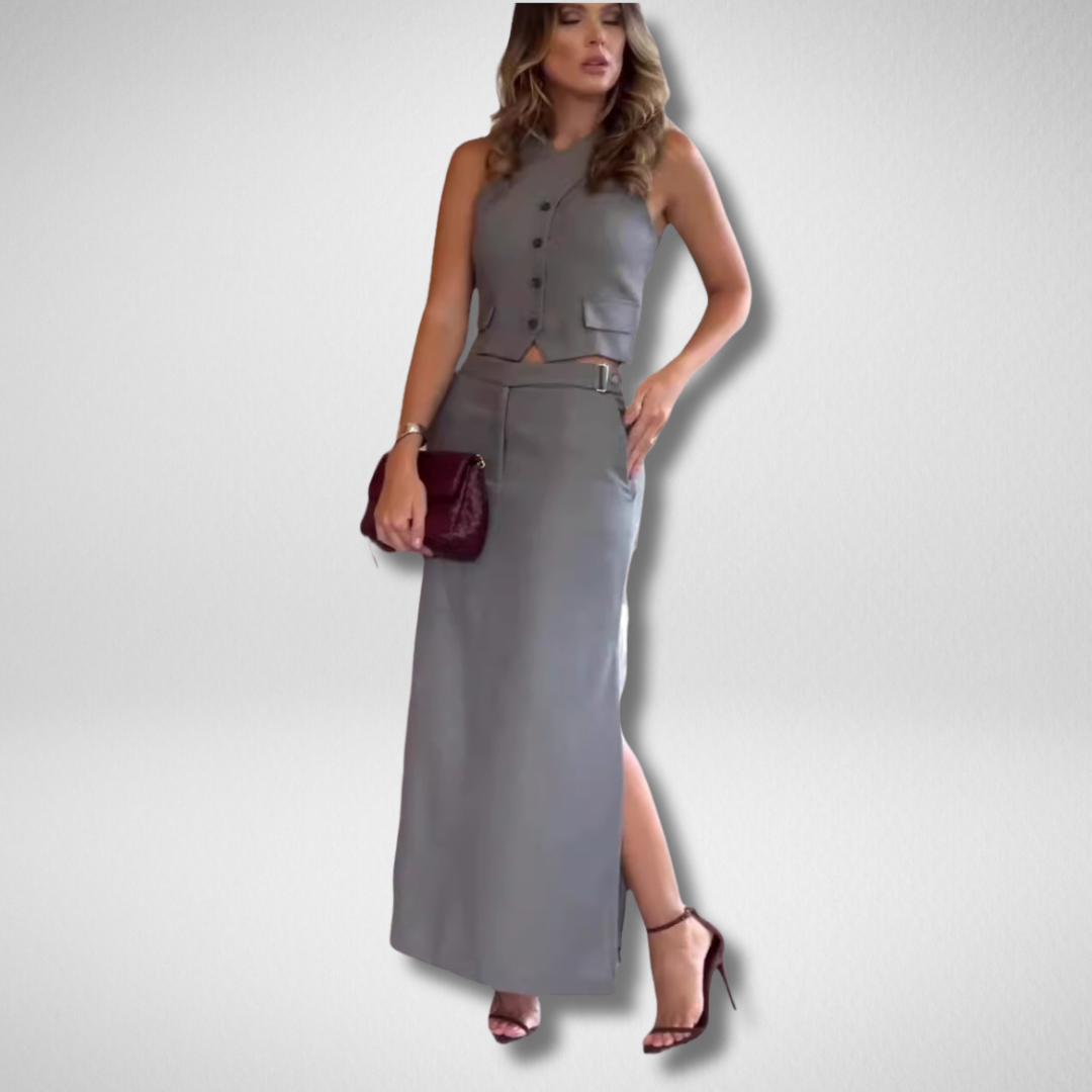 Zorgeloos stijlvol โ dag รฉn nacht. Deze tweedelige set met een verfijnde haltertop en elegante lange rok is jouw nieuwe go-to outfit. Gemaakt van een luchtige en comfortabele stof, ontworpen om jouw silhouet prachtig te accentueren. Of je nu een lunchafspraak hebt, een avondje uit of een zomers event bijwoont โ met deze set zie je er moeiteloos chic uit.