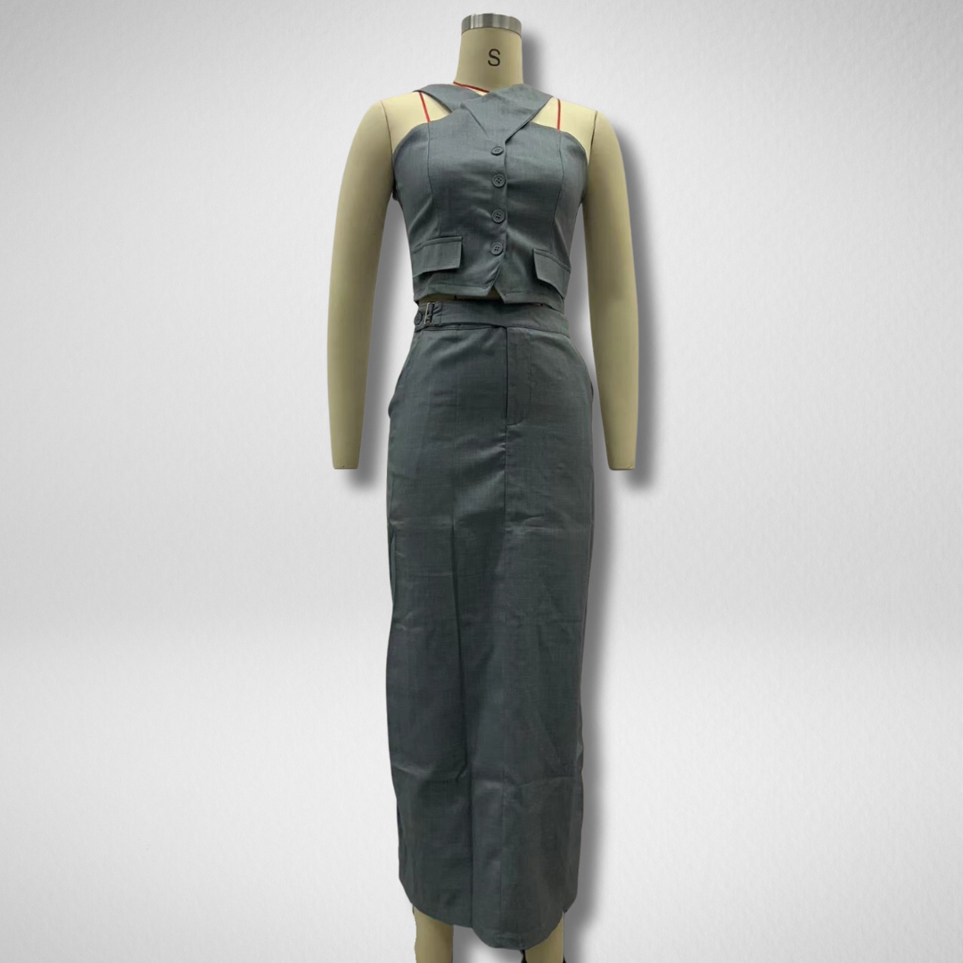 ๐ค Halternek Top & Hoge Taille Rok Set โ Elegantie in zijn puurste vorm